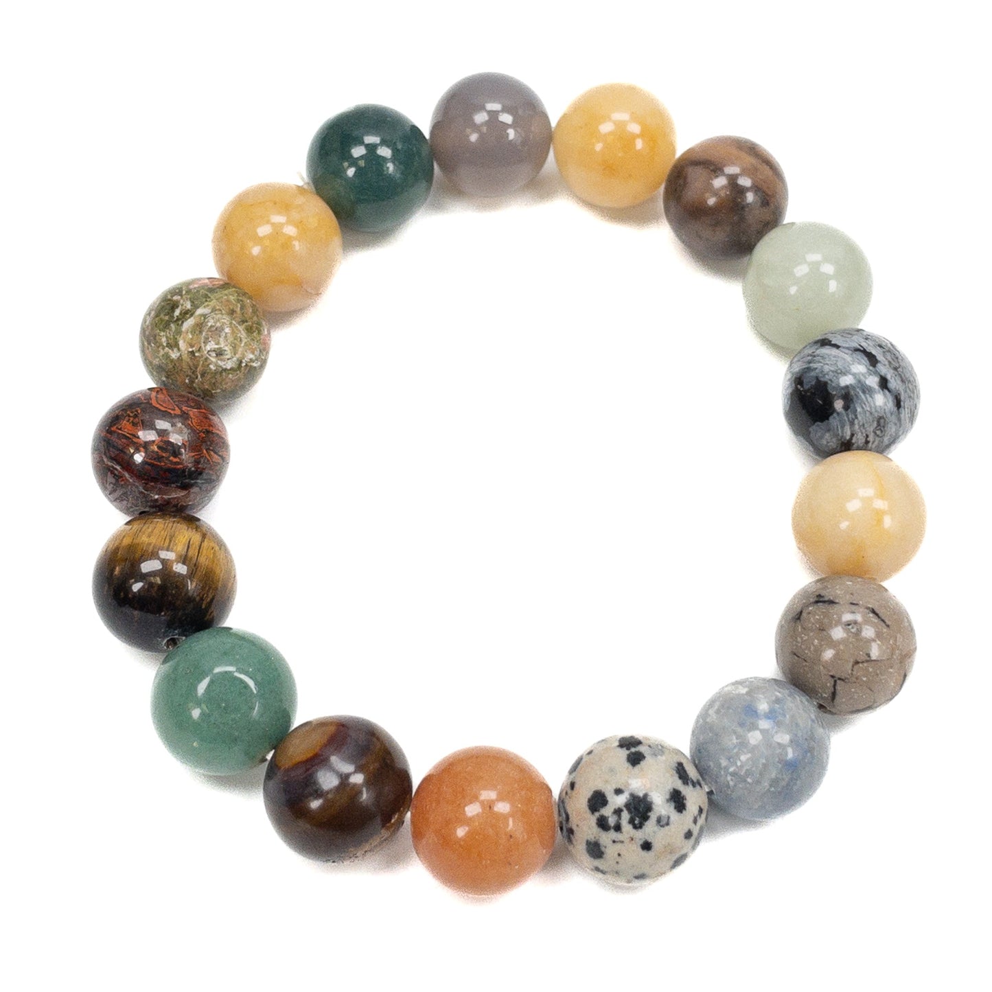- 12mm Mixed Gemstone smooth round bead stretchy bracelet