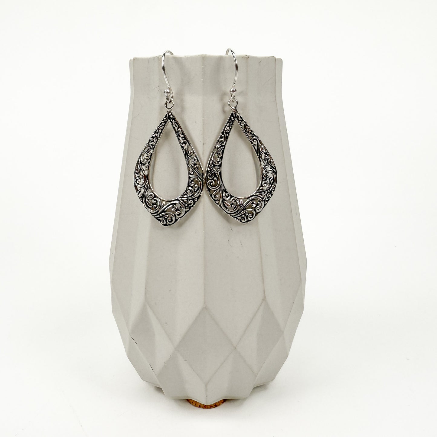 Ornate Filigree Teardrop Earrings - Bali Silver (2 pcs/S692)