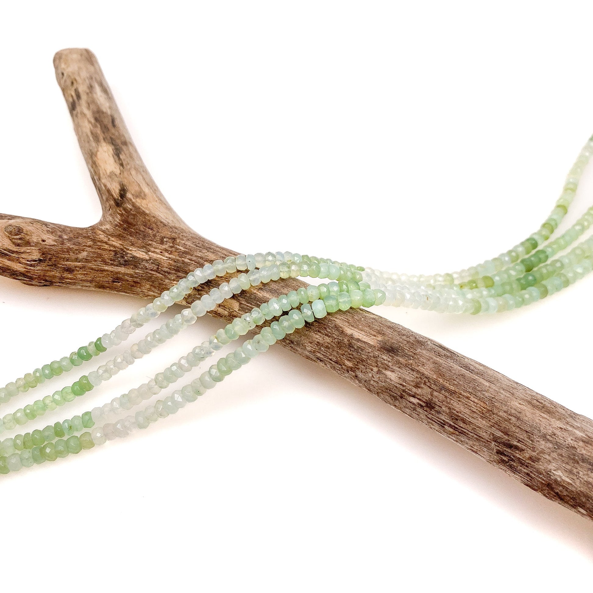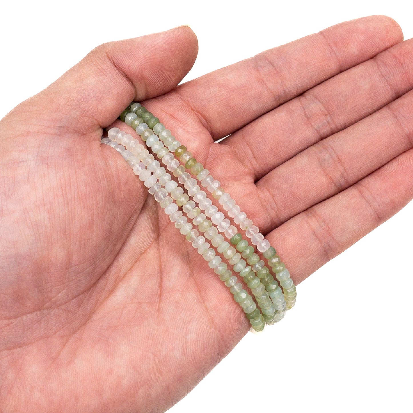 Bring soft ocean hues to your designs with Peruvian Opal 4mm Faceted Rondelles—a blue-green ombre strand with that signature opal “waxy” glow: translucent and milky at the same time. Sourced from Peru, these delicate spacers are perfect for airy bracelets, layering necklaces, and gemstone accents.