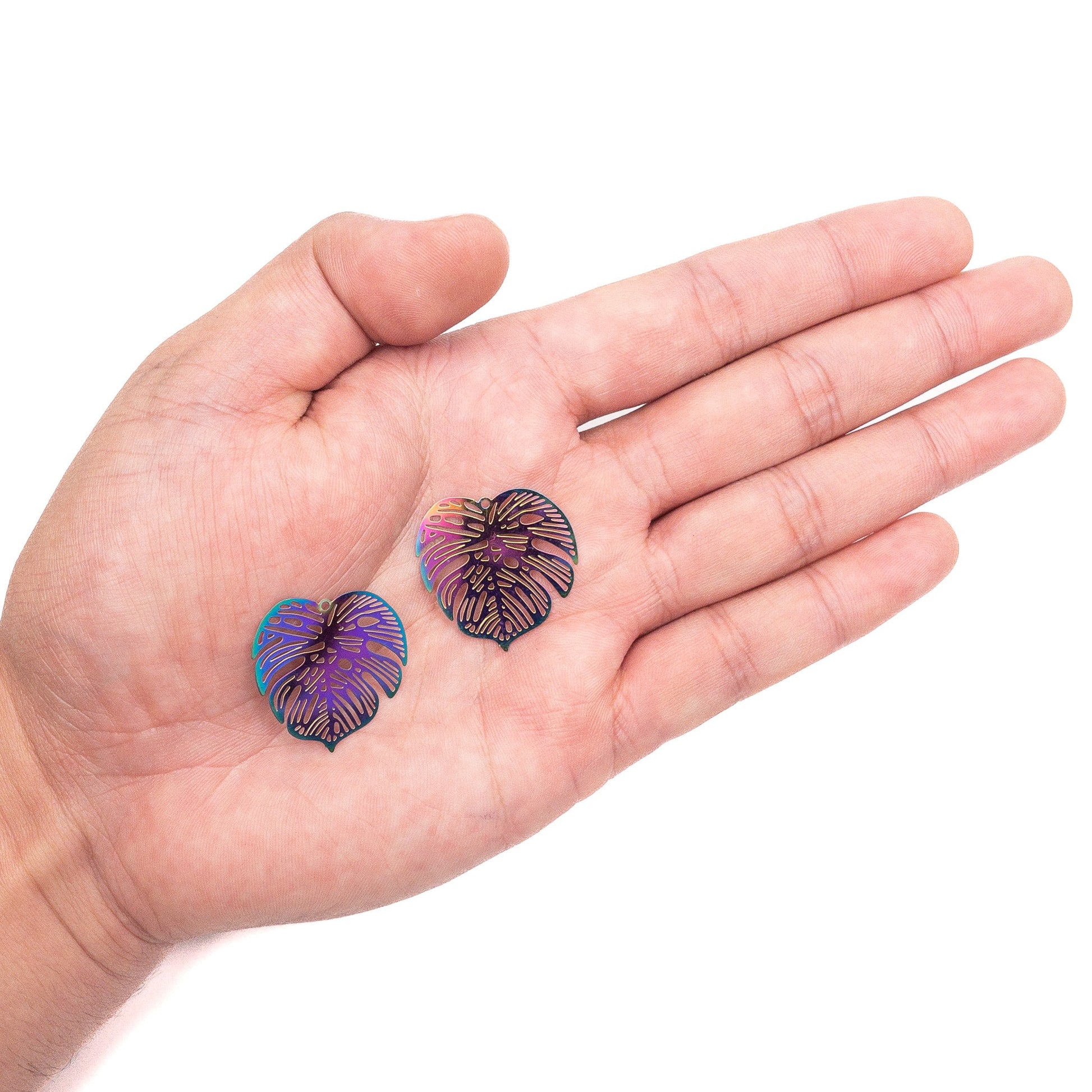 Rainbow Plated Filigree Cut Monstera Leaf Charm (Stainless Steel) - 10 pcs.