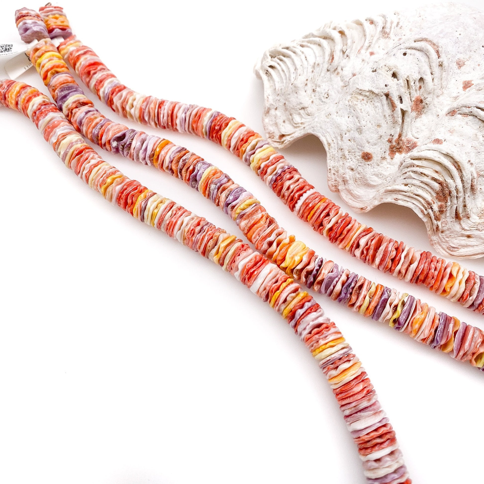 Rainbow Scallop Shell 8mm Round Flat Disc Bead - 8" Strand