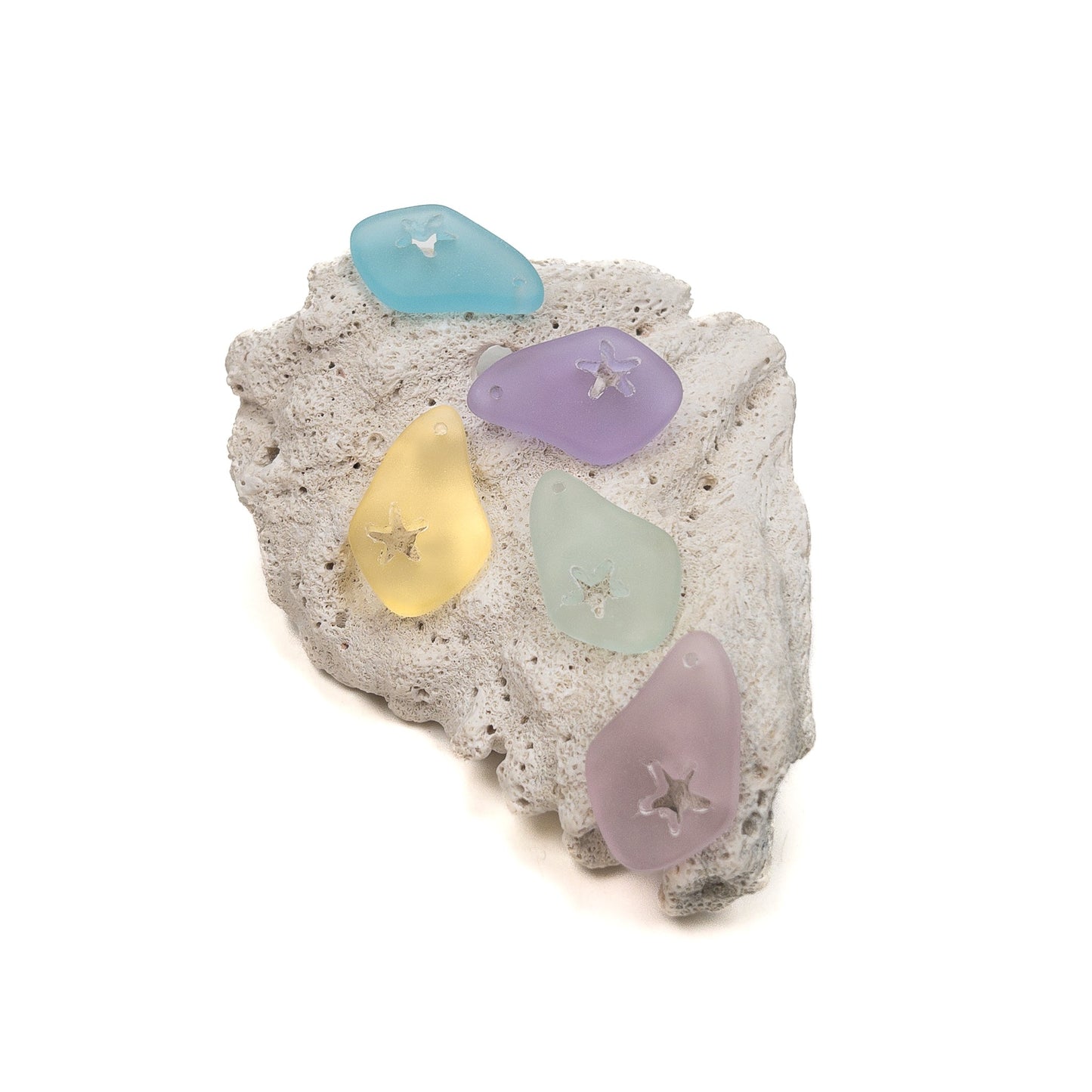 These recycled glass pendants come in a rainbow of cute colors, and feature a cutout starfish design. Perfect for beach-inspired jewelry or home decor.