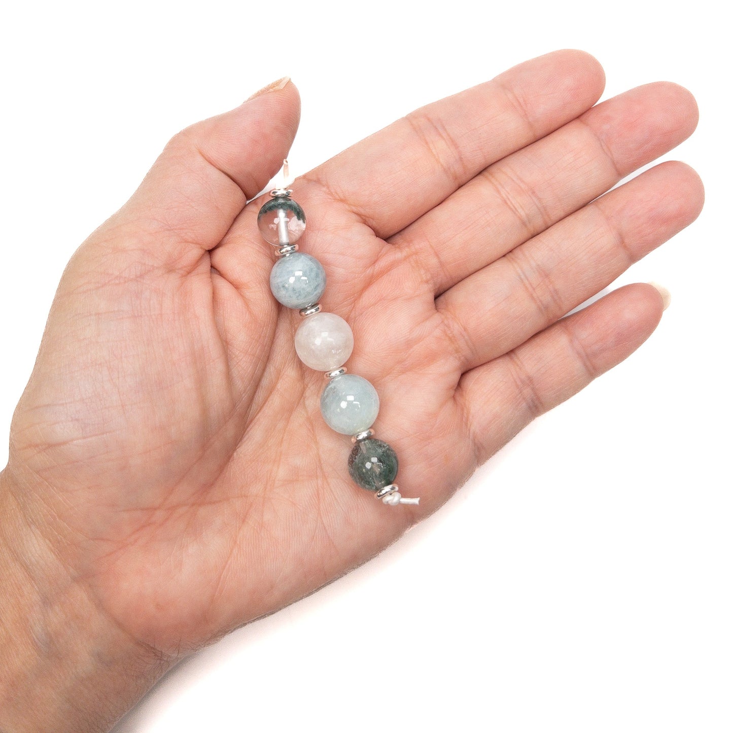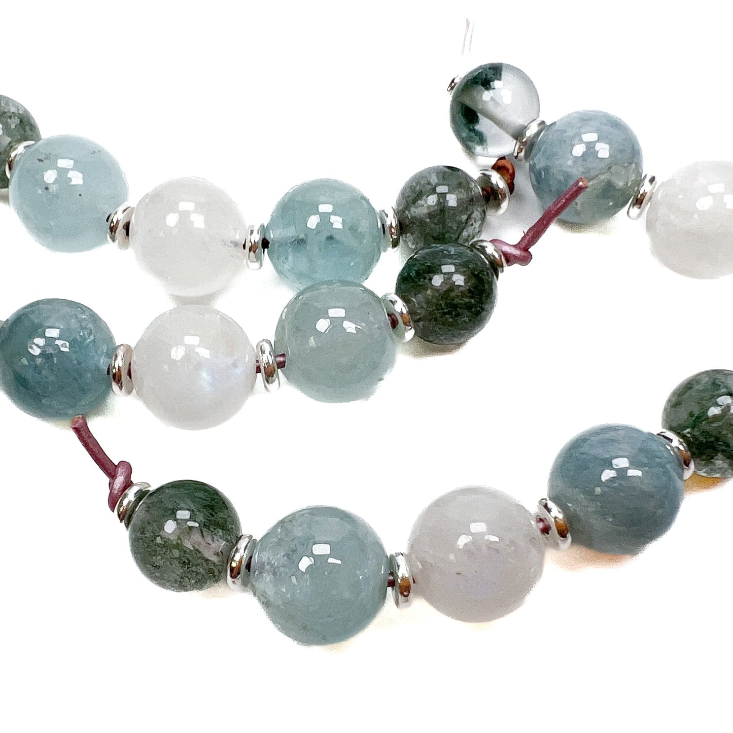 Rainbow Moonstone, Aquamarine and Green Rutilated Quartz is a DREAMY combination for you to wear, when thinking about the lovely things in life!