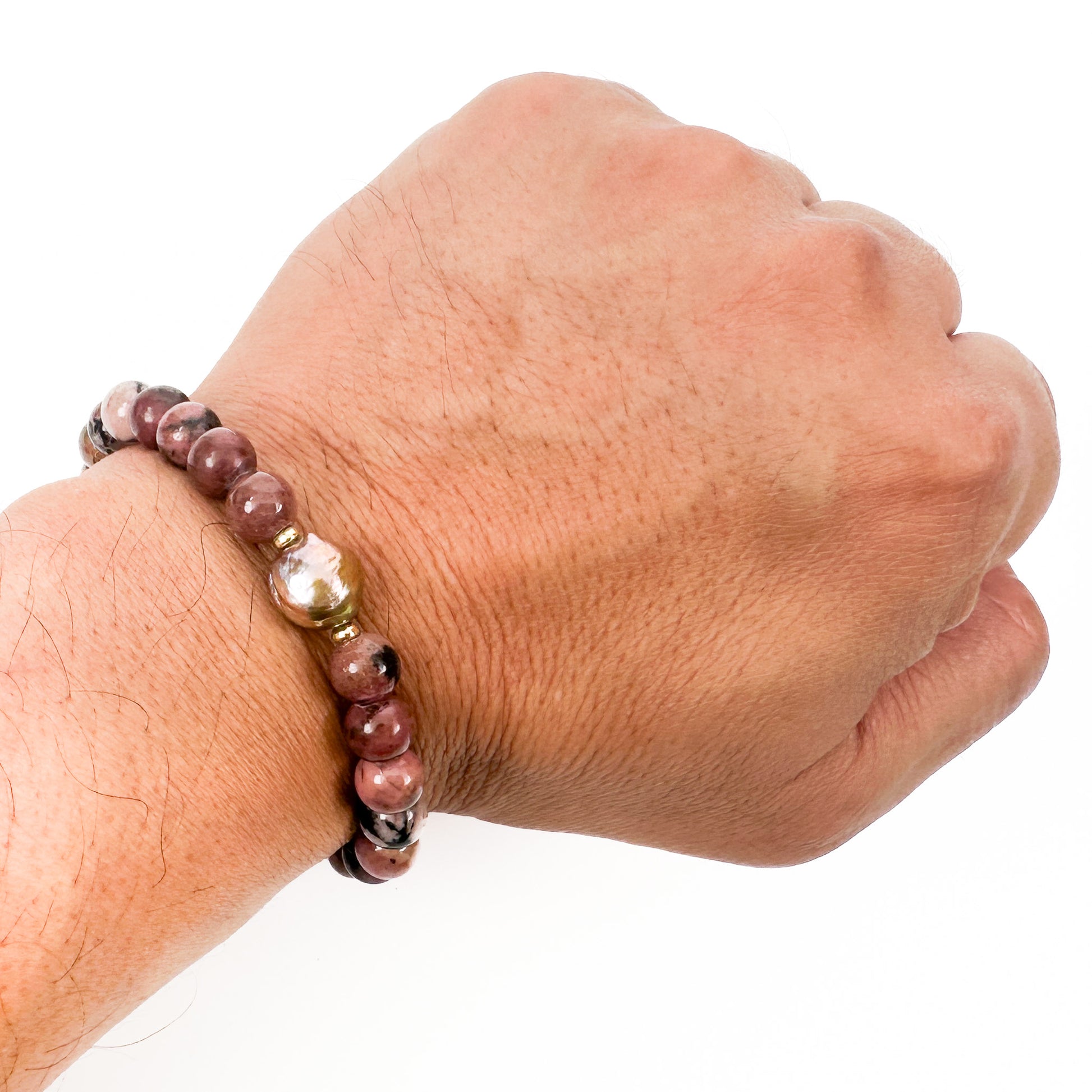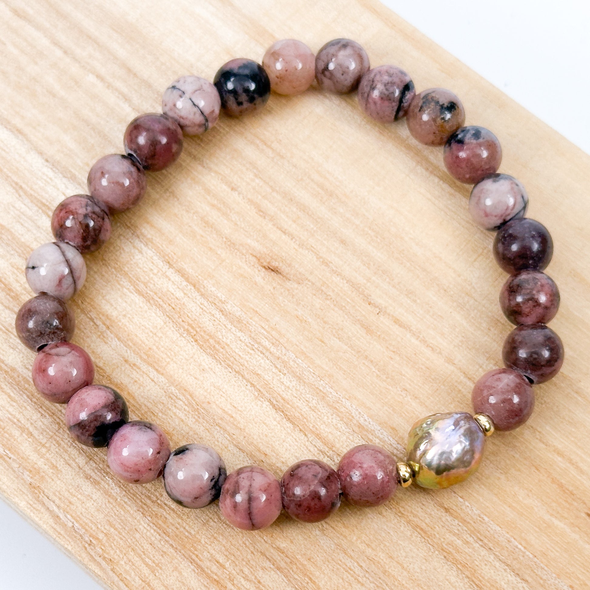 These gorgeous pink Rhodonite beads are the quintessential stone of compassion and the heart's deepest healing. At 8.25mm, they are the perfect size for daily, mindful wear! This powerful stone encourages love, understanding, and emotional balance, bringing true aloha to your creative practice. We hand-picked this size for its beautiful presence.
