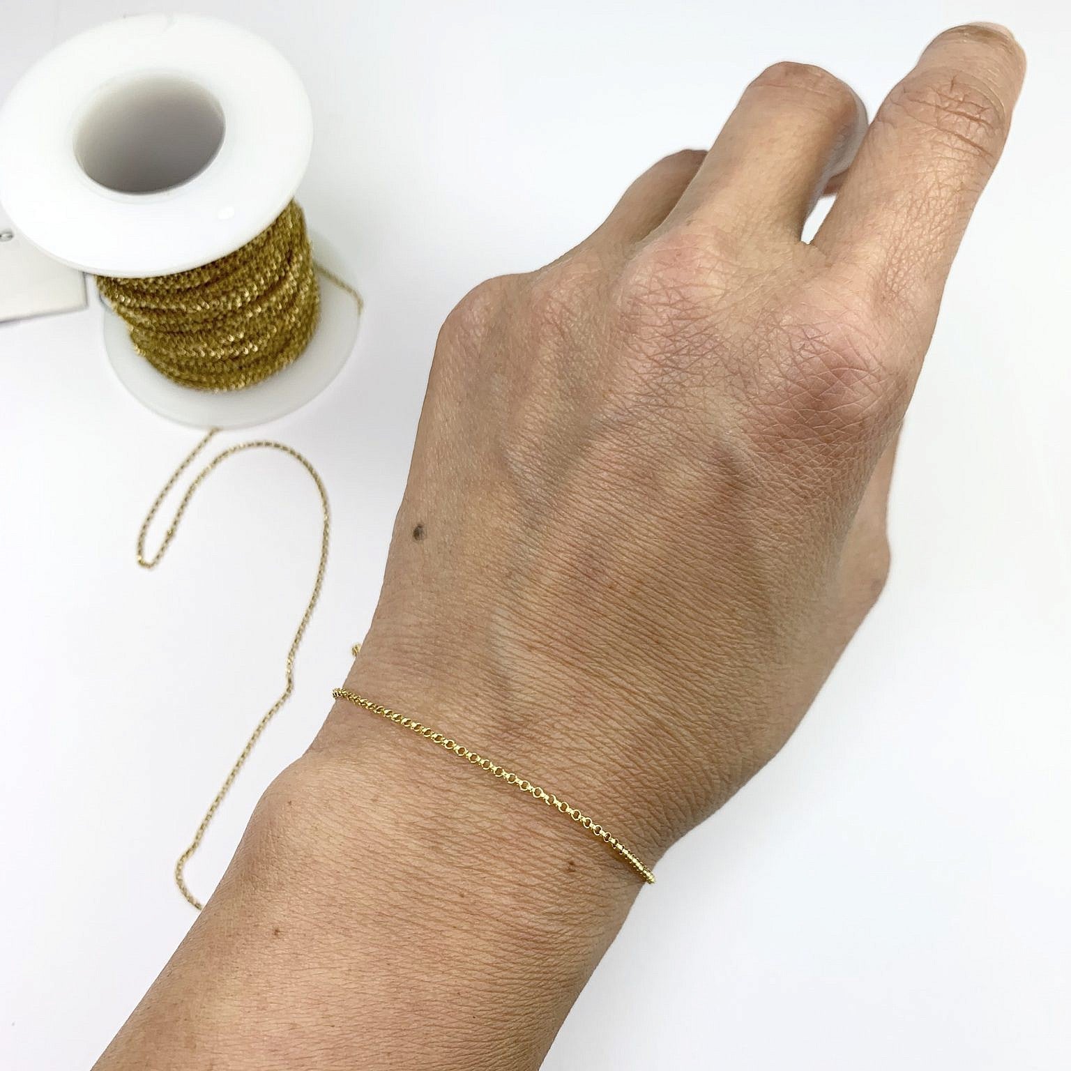 You can’t go wrong with rolo! The hole size is easy to fit wire and jump rings into, so it's a great attaching chain! Our 1.3mm Rolo Chain in 14kt gold filled is practical and fun for almost anything.