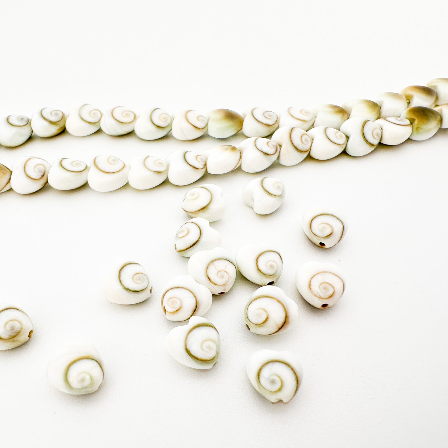 Bring mystical elegance to your jewelry designs with our Shiva Eye Heart beads. These exquisite beads are crafted from the natural Shiva Eye shell, known for its unique spiral pattern that symbolizes protection, good fortune, and spiritual insight.