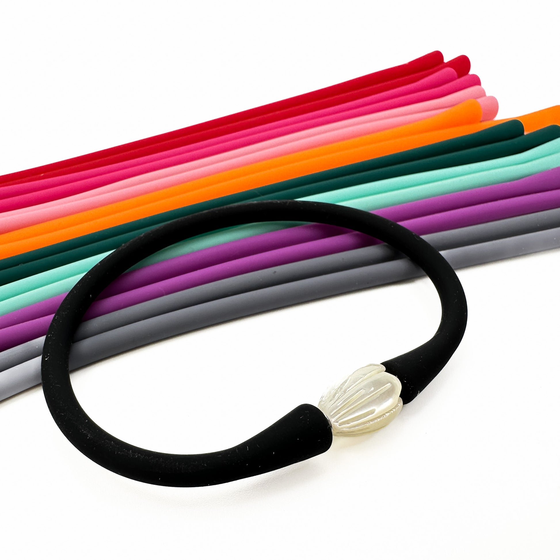 Add your own bead to this interchangeable silicone bracelet cord!! Available in a variety of vibrant colors, these flexible silicone cords are waterproof, weather-proof, comfortable to wear, easy to work with, and ideal for casual wear or stacking, making them perfect for creating fun and unique bracelets.
