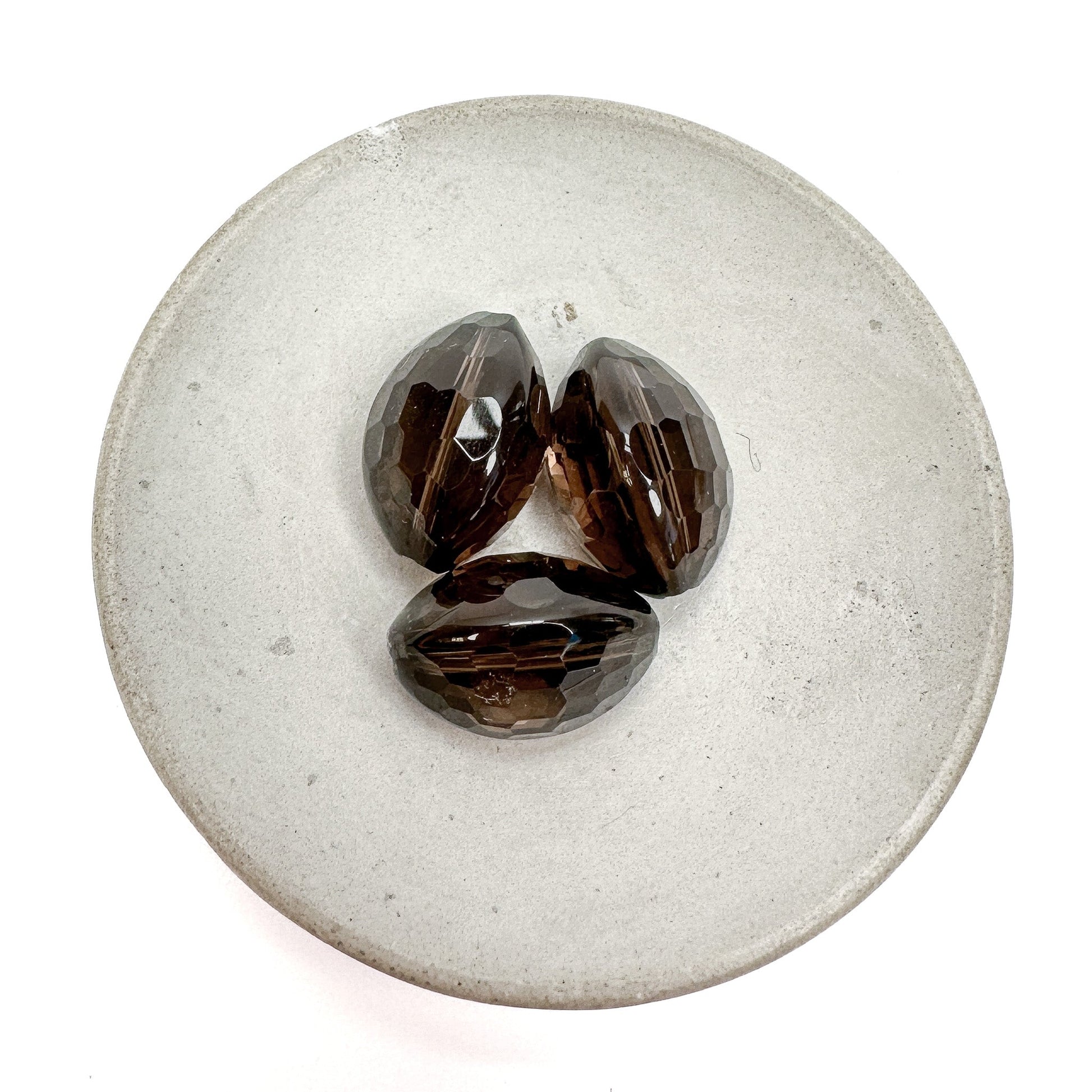 - 18mm Smoky Quartz faceted long drill coconut bead