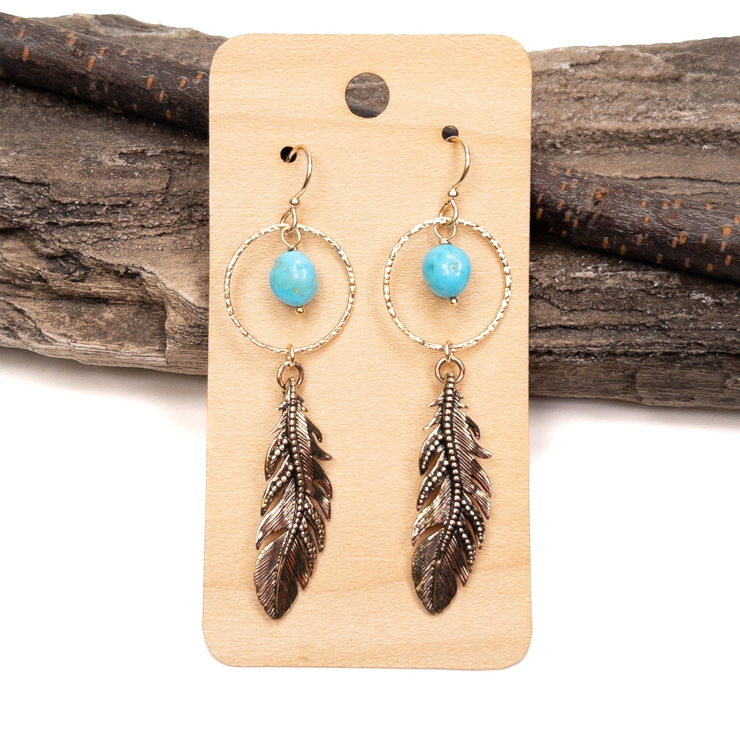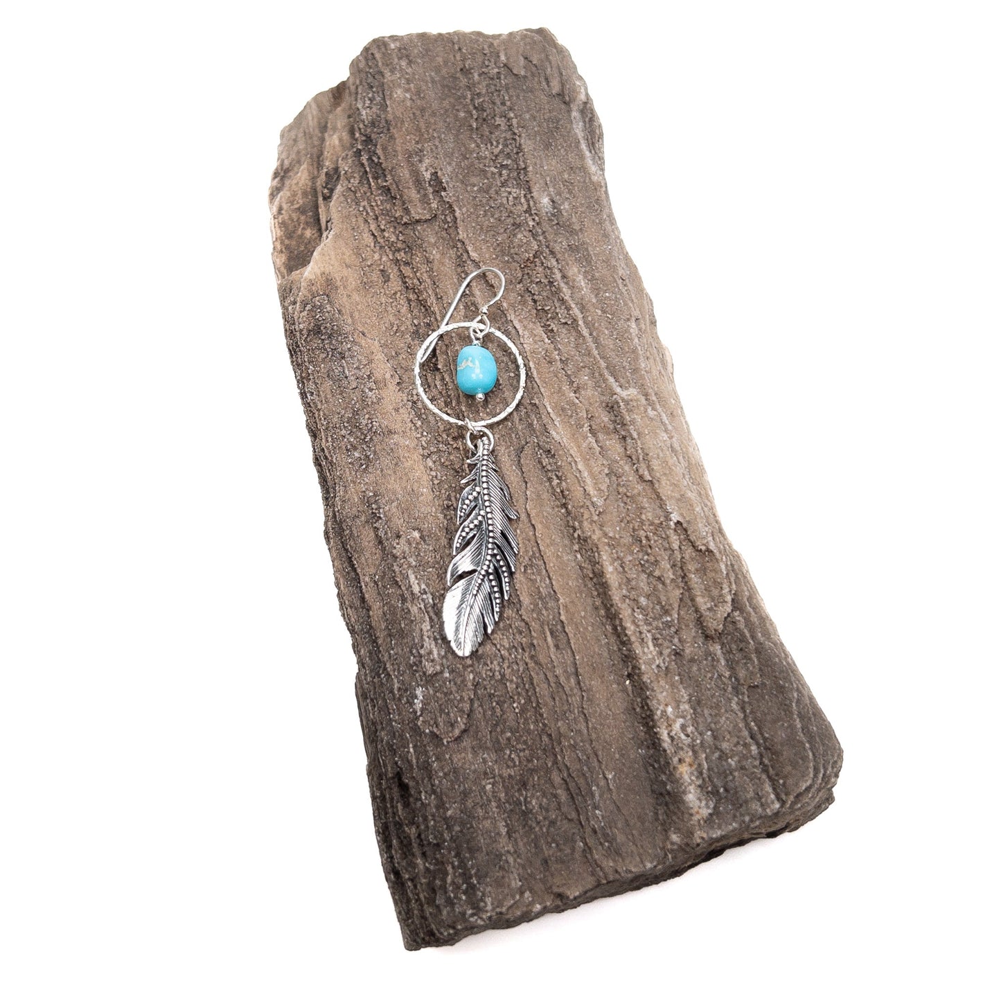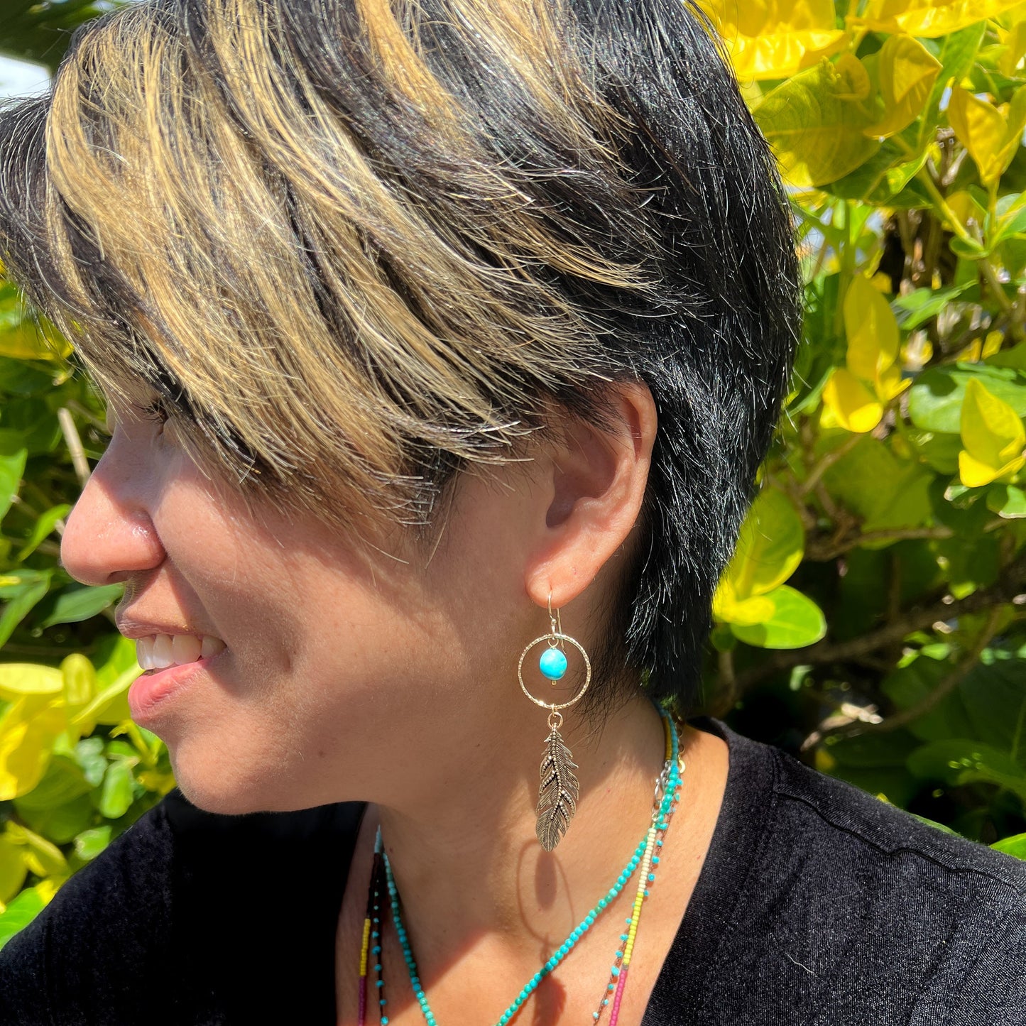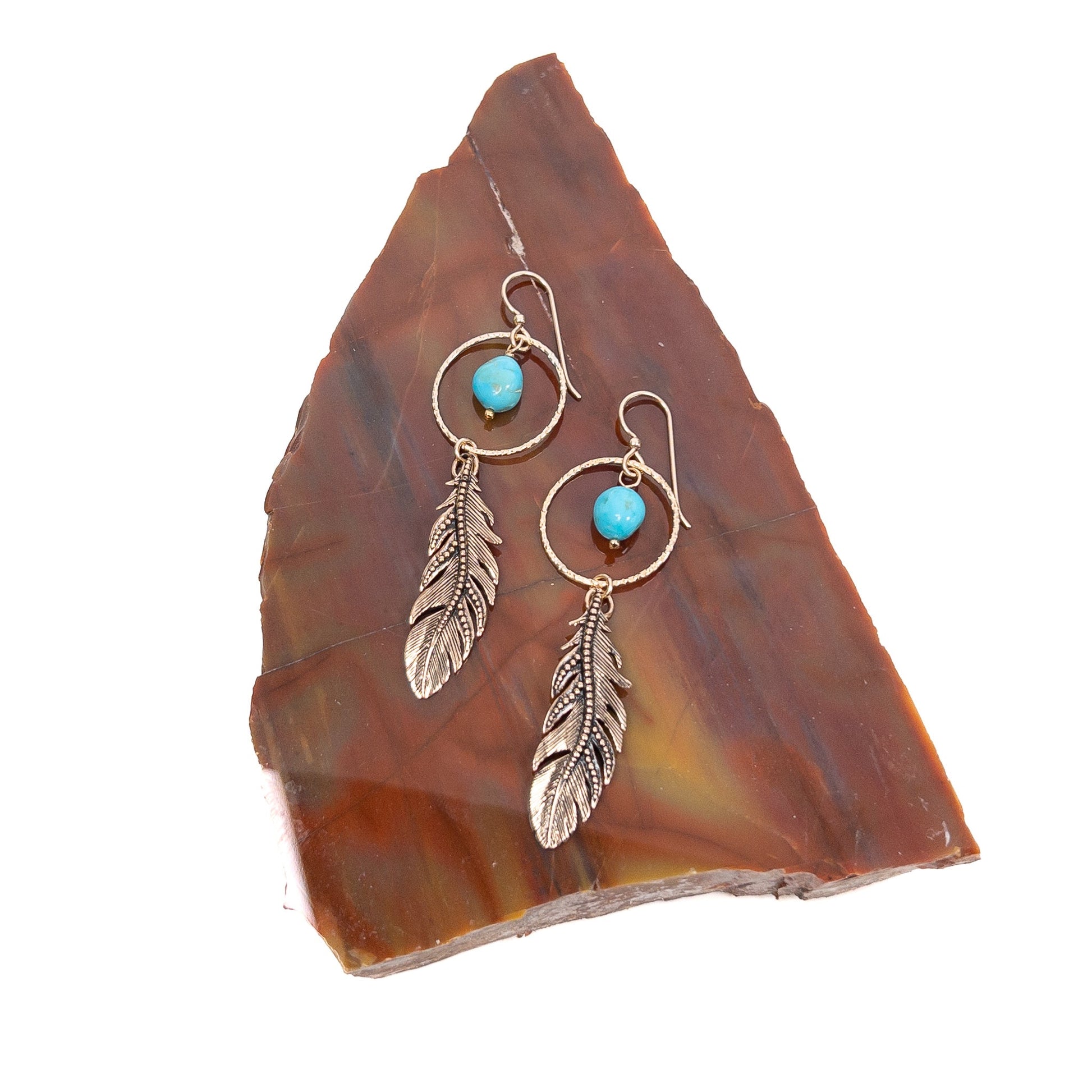 Sky blue Sleeping Beauty turquoise is the highlight of this delightful Southwest-inspired design. An exquisitely detailed feather charm suspended from our favorite silk textured ring completes the look. How-to assemble video below!