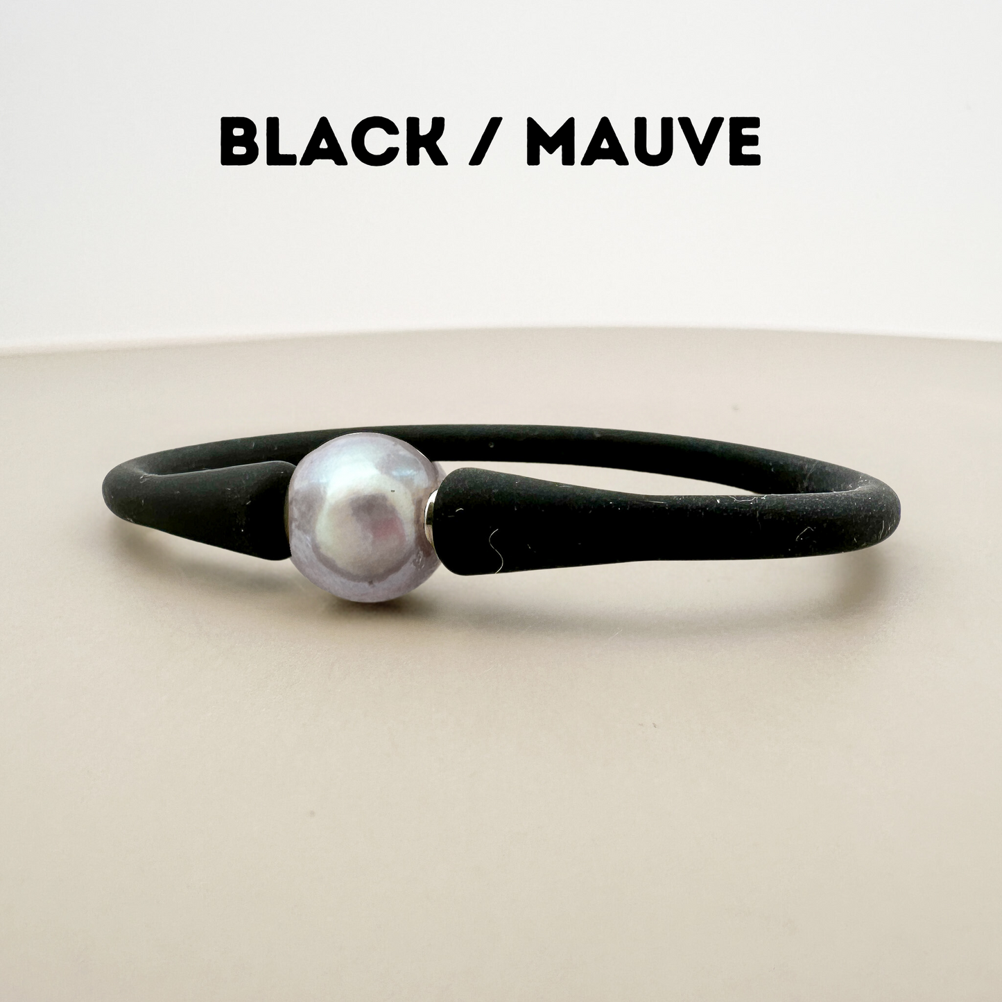 - Black Band: 4mm wide with an 8.5mm mauve freshwater pearl. The neutral brown-pink hue is earthy and comforting.