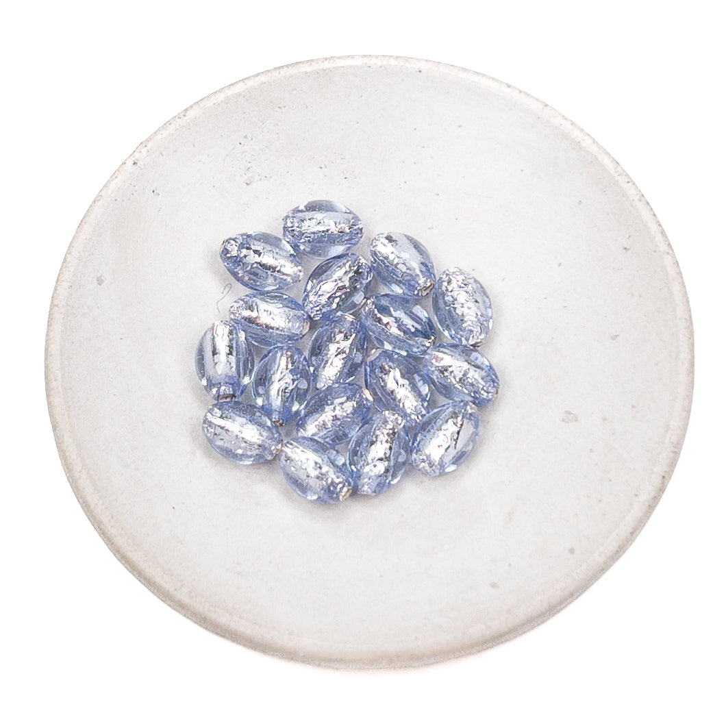 Tanzanite with Silver Foil 6x8mm Oval Glass Bead - 1 pc.