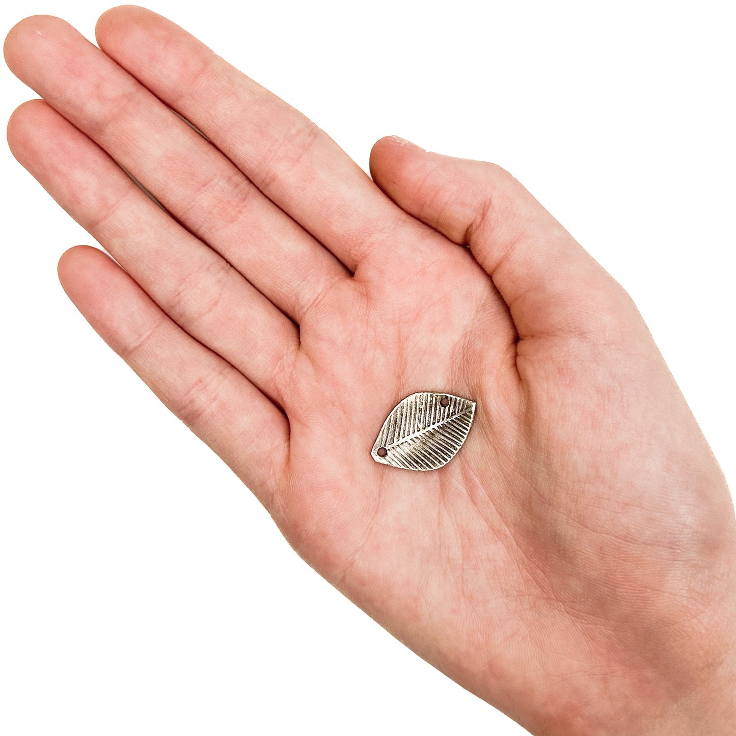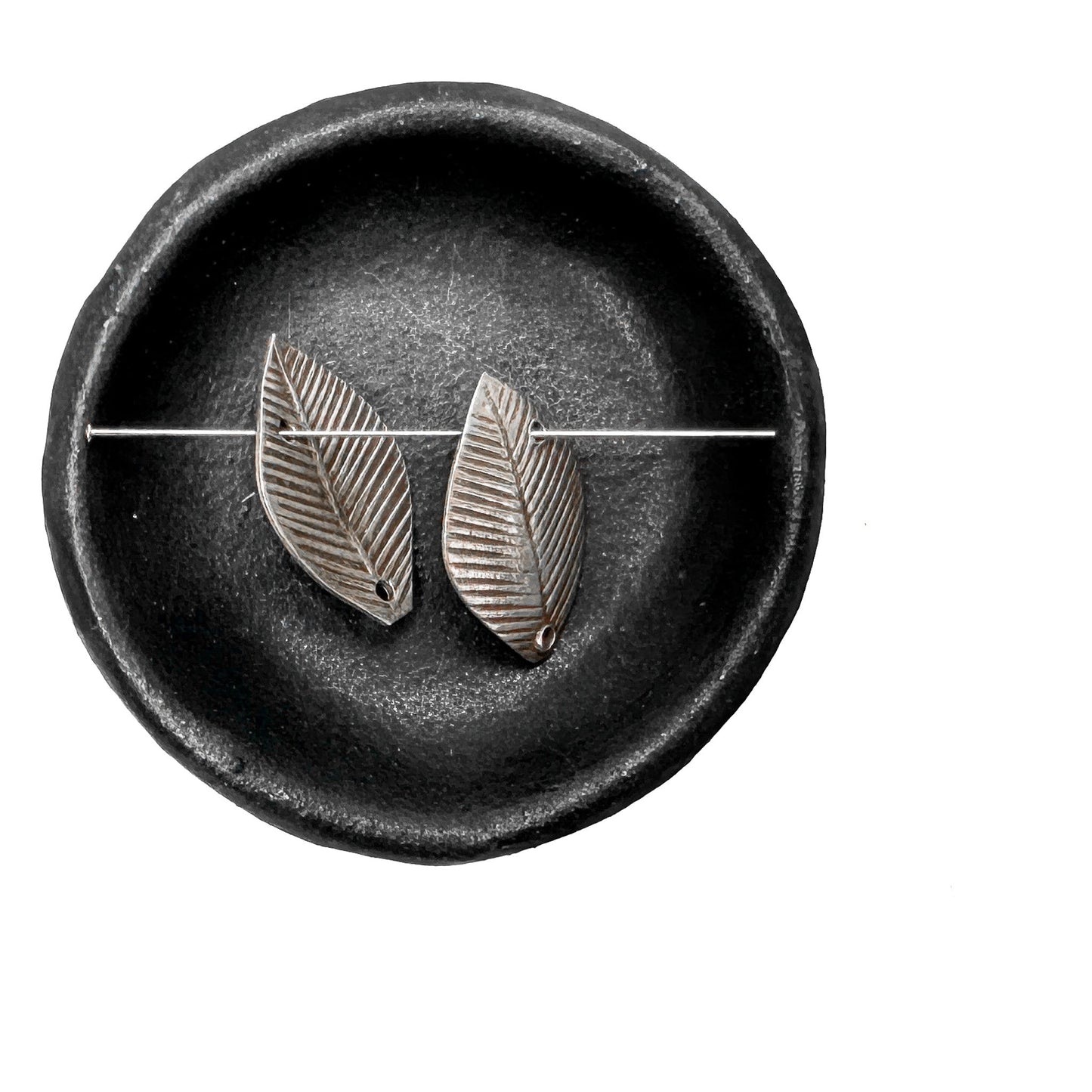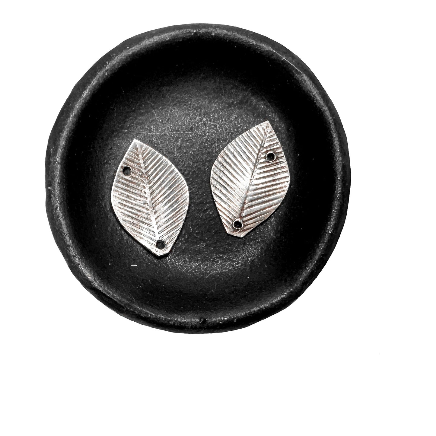 Textured 2-Hole Leaf Link (Thai Silver) - 1 pc.