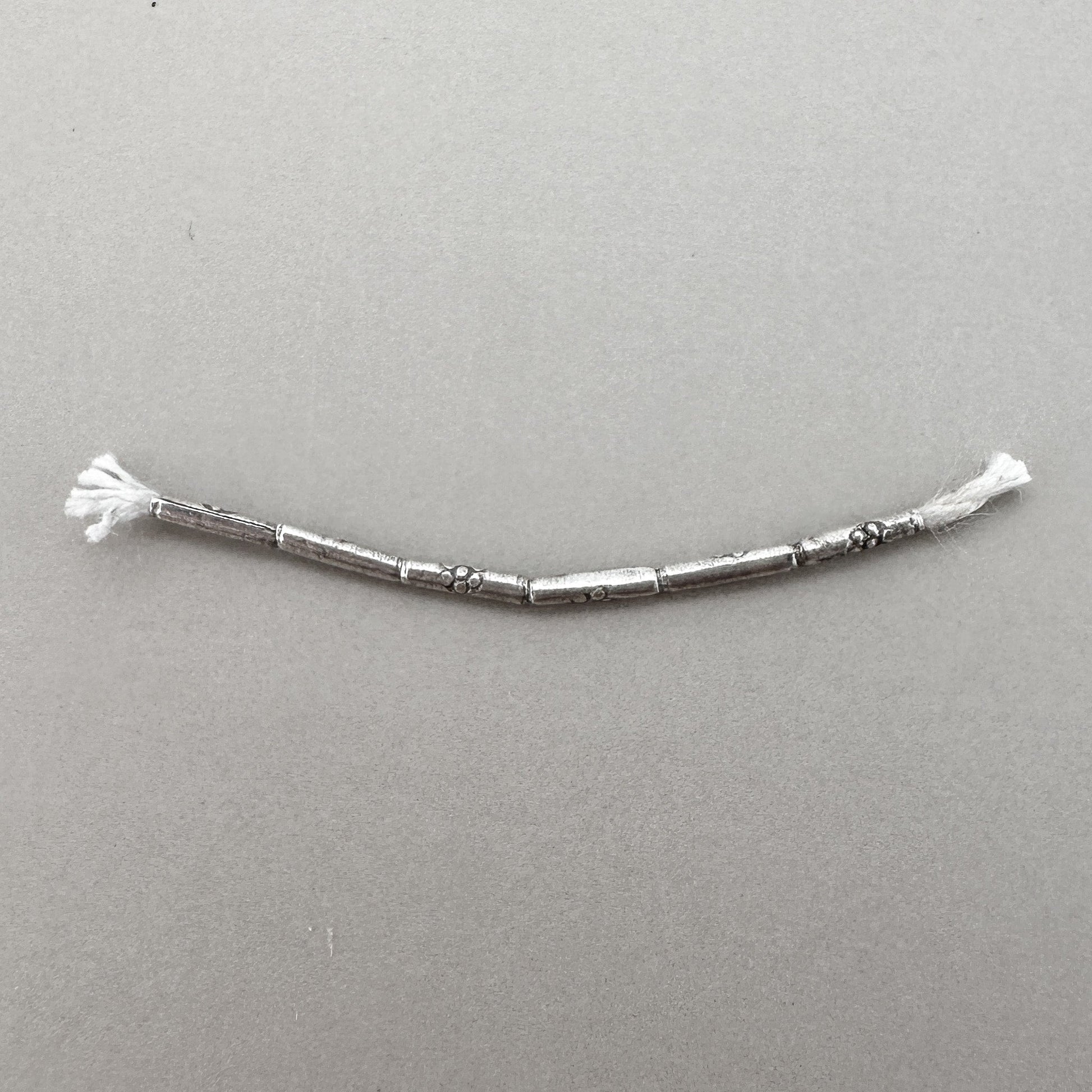 Each bead is a unique piece of art, painstakingly handmade using techniques passed down through generations. The delicate, elongated tube shape of this bead, crafted from high-quality Thai silver, showcases a sleek and modern design while embodying the deep-rooted traditions of its creators.