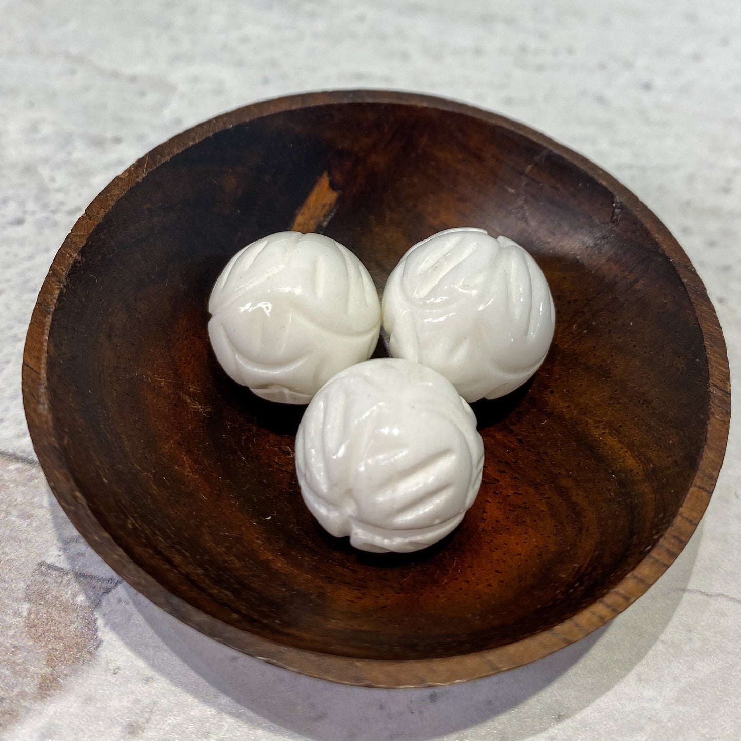 Tridacna Shell 14mm Round White Carved Lotus - 1 pc.