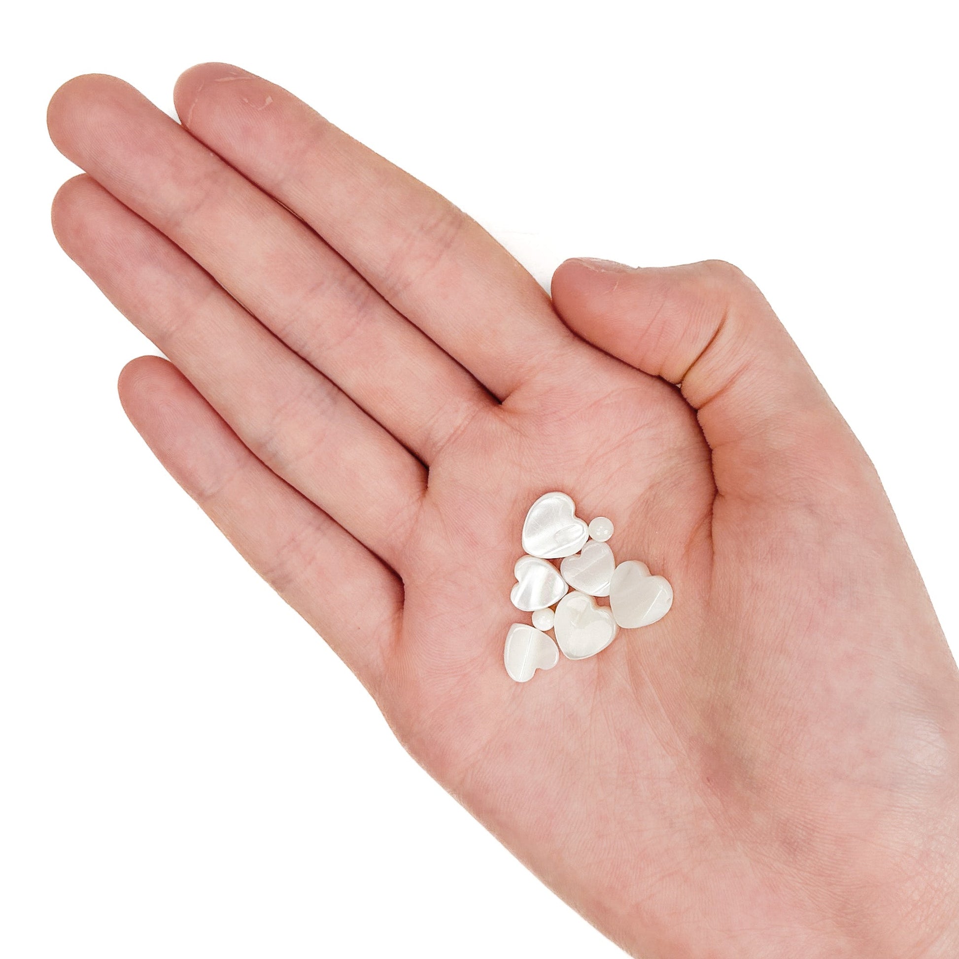 White Mother of Pearl Side-Drill Hearts Mix - 8 pcs. (MIX22)